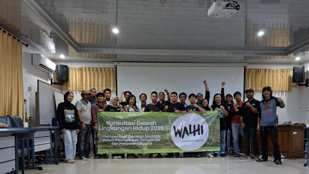 Banjarbaru, 22 Desember 2025 – Wahana Lingkungan Hidup Indonesia (WALHI) Kalimantan Selatan menyelenggarakan Konsultasi Daerah Lingkungan Hidup (KDLH) WALHI Kalsel Tahun 2025 pada Sabtu (20/12/2025) di Balai Pelatihan Kesehatan (Bapelkes) Provinsi Kalsel, Kota Banjarbaru. Forum tertinggi tahunan anggota tingkat daerah ini menjadi ruang evaluasi, pertanggungjawaban, serta konsolidasi arah gerakan lingkungan hidup di Kalimantan Selatan di tengah krisis ekologis yang semakin mengkhawatirkan.